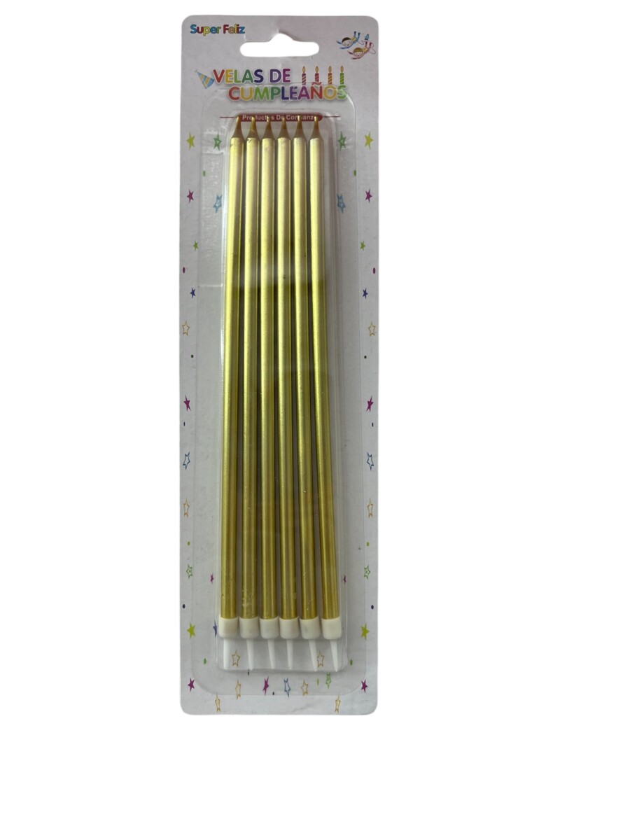 VELA CUMPLEAÑOS DORADA LARGA 6 UNIDADES